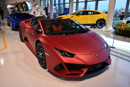 Bologna Airport, Bologna, Italy - March 03, 2020: Lamborghini is an Italian brand and manufacturer of luxury sports cars