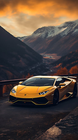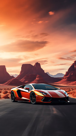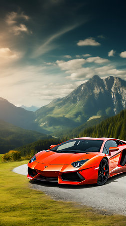 Sport car on the road with beautifull landscape mobile wallpaper.