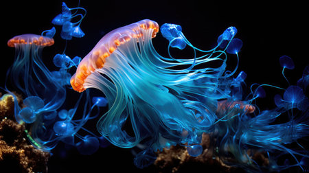 Beautiful jellyfish aesthetic intertwining jellyfish tentacles on a dark background