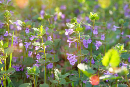 Lamium purpureum. Biennial herbaceous plants. Wild purple flowers grow in sunny garden