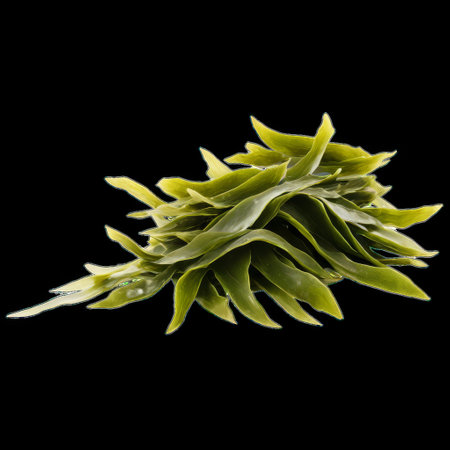 A detailed photograph of a single Seaweed, swaying gently in the wind, captured in natural daylight. Fresh and airy atmosphere, soft motion blur on leaves, crisp details on textures, background softly blurred into natural greenery, cinematic natural light, realistic photography.