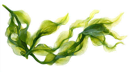 Green wavy seaweed isolated on white background. Computer generated illustration.