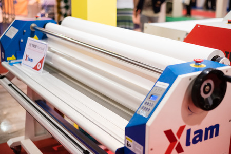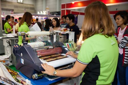 BANGKOK - AUGUST 29 :plastic coating machine at Pack Print and T-PLAS THAILAND on Aug 29,2015 in BITEC ,Bangkok, Thailand.