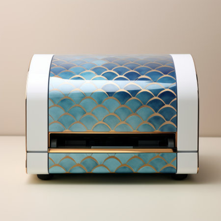 craft room blue gold scales wall art: this japanese contemporary piece, inspired by fujifilm eterna vivid 500t film, showcases a rollerwave design with hidden details. its machine aesthetics and realistic rendering, reminiscent of the minolta riva mini, make it a captivating addition to any space. ai generated