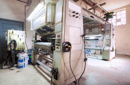 Details of a printing machine inside factory.