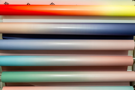 many rolls of wrapping paper or film for gifts and packing bouquets (wallpaper)
