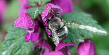 Natural wide angle closeup on a purple archangel, dead-nettle, Lamium purpureum