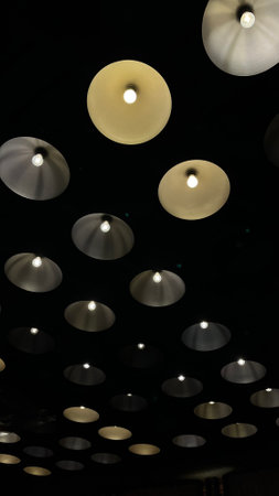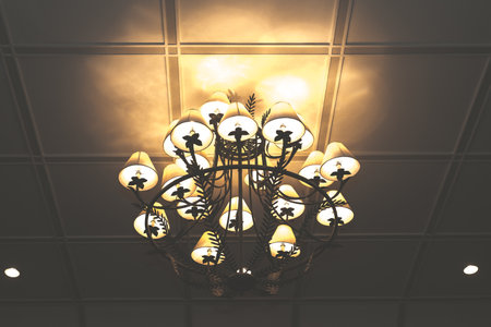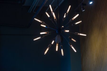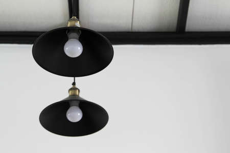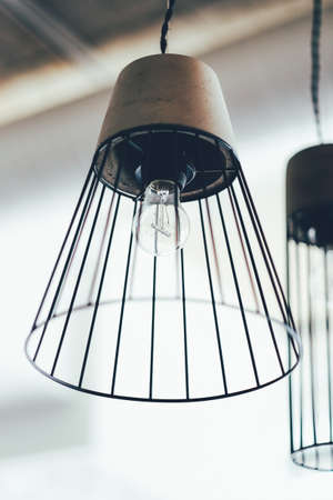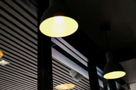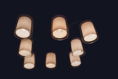 View of vintage ceiling light. Lighting decoration concept. Modern hanging ceiling lamps