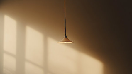 A minimalist pendant light creates enchanting shadows in a modern interior space.