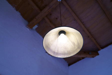 Vintage lamp hanging on the ceiling in the old house, vintage style