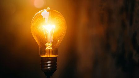 A vintage light bulb radiates a warm glow, set against a dark background. Ideal for concepts of creativity, ambiance, and design. Perfect for artistic compositions.