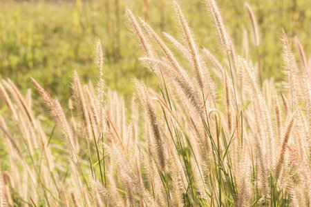 grass flowers that lie along the wind that blows through And impacted by the soft light of the sun.