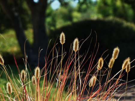 Different ornamental grasses in the garden.Chloris virgata