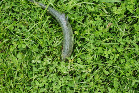 Earthworm and the first spring stream, close-up, selective focus