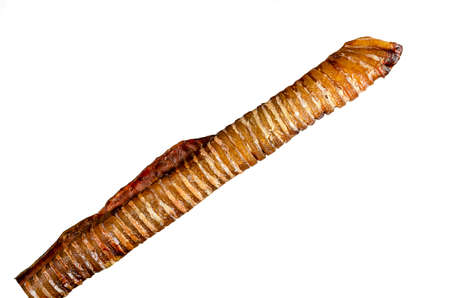 Dog treats. Natural healthy chewy treats for pets. Dried beef trachea king size, isolated on a white background.