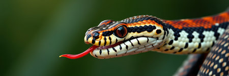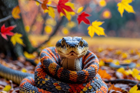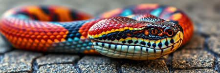 Colorful snake with vibrant scales captured up close in a natural habitat during daylight hours