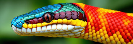 Colorful close-up of a snake showcasing intricate scales in a natural habitat