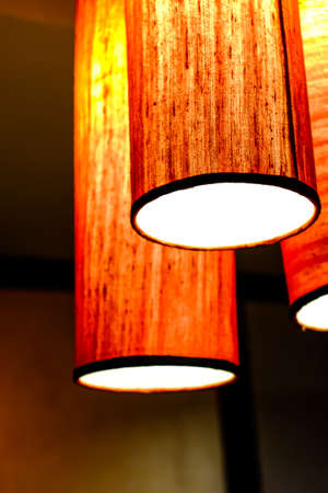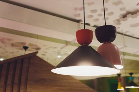 Ceiling decoration lamp in row. Decoration in cafe