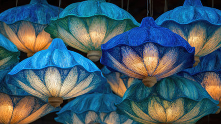 Ceiling lights hanging in a room, casting a warm and cozy glow. Concept Interior Lighting, Cozy Atmosphere, Room Decor, Hanging Lights, Ambient Glow