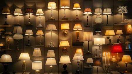 Wall of lamps in a lighting store, showcasing dozens of styles from traditional to ultra-modern
