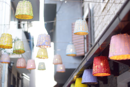 Colorful lamps hanging in the cafe