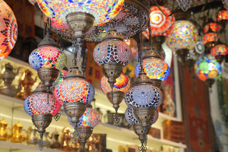 Traditional arabic lamp at souvenir shop in Dubai, UAE