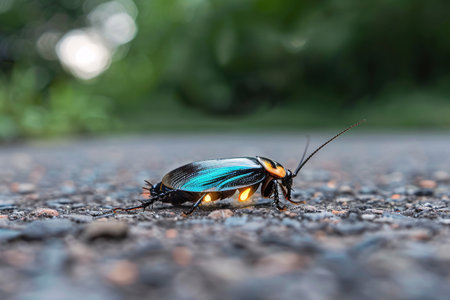 Macro shot of a firefly glowing in the dark, illuminating the night with its bioluminescence