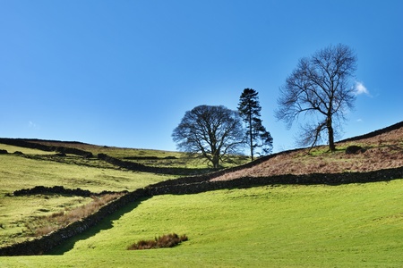 peak district landscape with fields and dry stone walls - view from the tissington trail cycle path and footpath