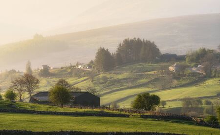 Scenic view at farms on summer. Forest Of Bowland , Lancashire, England UK