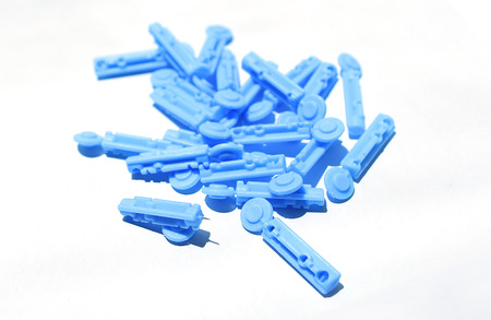 Blood test strips, diabetic control and diagnosis. Studio Photo