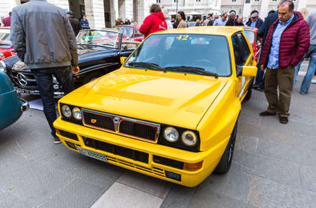TRIESTE, ITALY - APRIL 3: Photo of a Lancia Delta Evolution on the Trieste Opicina Historic. APRIL 3, 2016. Trieste Opicina Historic regularity is run for Vintage and Classic Cars.