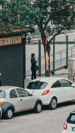 Rome Italy, March - 13, 2020. Man in a protective mask against infectious diseases and as a protection against contamination and influenza. Pandemic coronavirus COVID-19 Rome