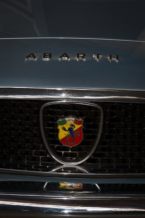 BERLIN, GERMANY - MAY 17, 2014: Hood ornament of the car Fiat Abarth 2200 Coupe Allemano. 27th Oldtimer Day Berlin - Brandenburg