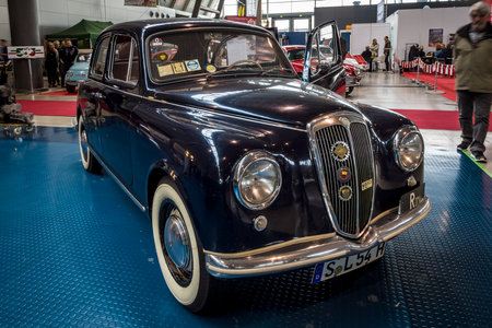 STUTTGART, GERMANY - MARCH 03, 2017: The small family car Lancia Appia Berlina, first series, 1954. Europe's greatest classic car exhibition RETRO CLASSICS