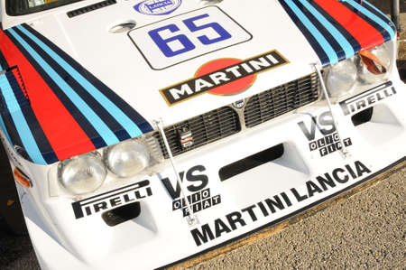 San Marino: 2010 09 01 Rally free event Martini Lancia 037 Rally Car Group B Action. High quality photo