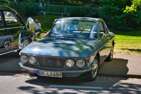 BADEN BADEN, GERMANY - JULY 2022: gray gray LANCIA FULVIA COUPE RALLYE 1.3S 1600 1300 1965, oldtimer meeting in Kurpark.