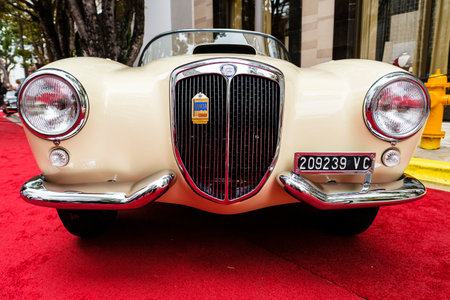 Miami, Florida USA - February 16, 2020: Vintage exotic Lancia sports car on display at the public Miami Concours car show in the upscale Design District.