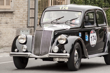 PESARO COLLE SAN BARTOLO , ITALY - MAY 17 - 2018 : LANCIA AURELIA B 20 GT 2000 1952 on an old racing car in rally Mille Miglia 2018 the famous italian historical race (1927-1957)