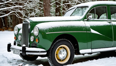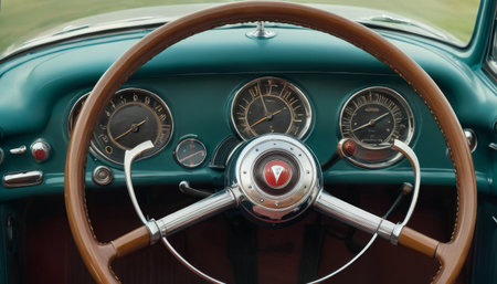 The handcrafted dashboard of a classic car featuring a of analog dials and glowing indicators reminiscent of a bygone era