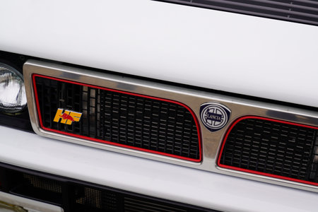 Bordeaux , Aquitaine France - 11 06 2022 : Lancia delta xf sign text car front grill with logo brand Italian retro vintage old timer motor sports
