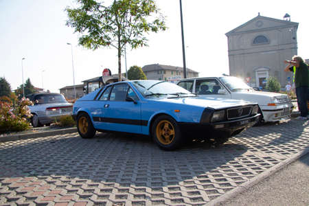 Bibbiano-Reggio Emilia Italy - 07 15 2015: Free rally of vintage cars in the town square Lancia Beta Montecarlo. High quality photo