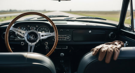 car interior, with dashboard and console accessories in the style of retro, created with generative ai