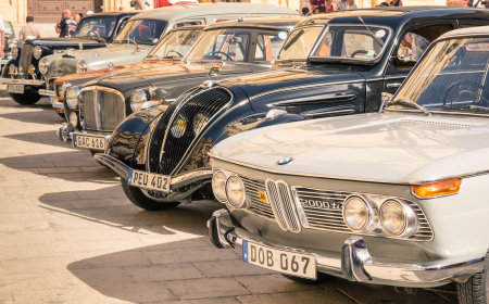 MDINA, MALTA - OCTOBER 10, 2014: vintage classic retro cars parked in San Pawl square. The ancient capital Mdina is a medieval walled town situated on a hill in the centre of the island