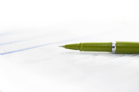 Ballpoint pen on a green sheet of paper