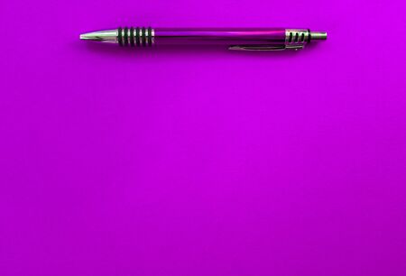 Purple pen on purple background. Copy space.