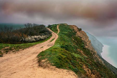 hiking trail on cliff skirting the sea in Howth, Ireland