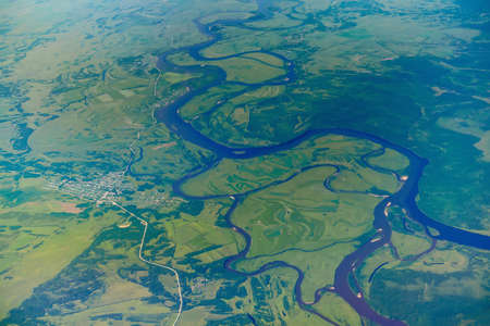 View of the confluence of the Zeya and Selemdzha rivers from the airplane window