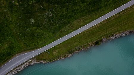 Aerial view of a road (Fv724) on the side of Oldevatnet lake, in Norway