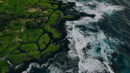 Aerial view of beach coastline in Hawaii, usa