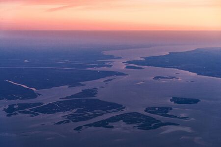 Landscape aerial sunrise view of River Plate close to Buenos Aires, Argentina.